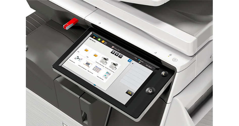 МФУ оборудован панелью управления с цветным сенсорным дисплеем размером 10,1 дюйма. Панель управления можно наклонять под различными углами для удобства просмотра информации и упрощения управления МФУ. Оптимальный угол наклона панели позволяет комфортно воспринимать информацию и избежать возможных ошибок при работе. Удобный инновационный интерфейс представляет возможность работать с МФУ легко, на интуитивном уровне.