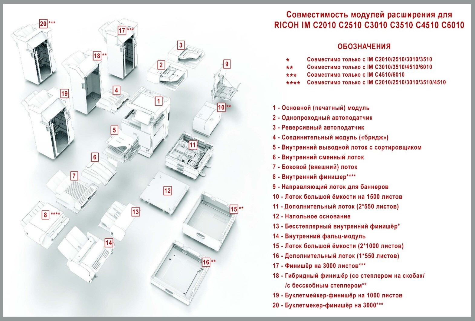 В базовом варианте предусмотрен внутренний лоток вывода, вмещающий до 500 листов – он может быть расширен дополнительными системами до 1625 листов. Возможно дооснащение различными модулями для послепечатных операций. Может использоваться в качестве системного ядра организации базовых функций распределенного документооборота уровня отдела, обеспечивая высокую продуктивность работы. Встроенные и расширяемые функции сетевой и локальной безопасности гарантируют бесперебойность и устойчивость функционирования системы.