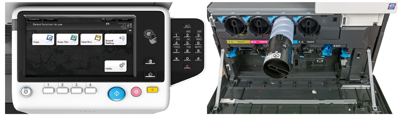 Konica Minolta bizhub C227 — высококлассное полноцветное МФУ формата А3. Позволяет печатать 65 страниц в минуту в цвете и ч/б. Форматы бумаги: A6-SRA3, пользовательский, баннер до 1,2 м. Самый большой сенсорный экран в линейке Konica Minolta. Высокоскоростной однопроходный автоподатчик документов с загрузкой до 300 листов значительно облегчает сканирование больших объемов материалов, а дополнительные ультразвуковые датчики двойной подачи гарантируют, что каждая страница оригинала будет отсканирована или скопирована. Идеальная платформа для продуктивной офисной среды.