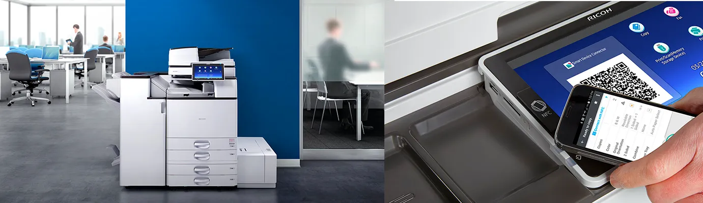 Используйте MP 4055, чтобы увеличить свободу на рабочем месте без снижения производительности. Просто загрузите приложение RICOH Smart Device Connector на свои устройства Android® или iOS®, чтобы обмениваться информацией и печатать без конфигураций или утилит для настройки принтера. Подключите устройства Android и iOS к МФУ через Bluetooth (BLE) или устройства Android с помощью тега Near Field Communication (NFC). Получайте информацию непосредственно из приложений облачного хранилища, таких как Google DriveTM, BoxTM или DropboxTM, и распечатывайте ее с помощью приложения RICOH Smart Device Connector. Кроме того, теперь вы можете печатать электронные письма и вложения с помощью последней версии (v3.0) приложения. Сканируйте оригиналы на МФУ и отправляйте их на свое личное устройство или прямо в облачное хранилище, чтобы вы могли получать к ним доступ или распространять их в цифровом виде по своему усмотрению. Также доступна печать из AirPrint®.