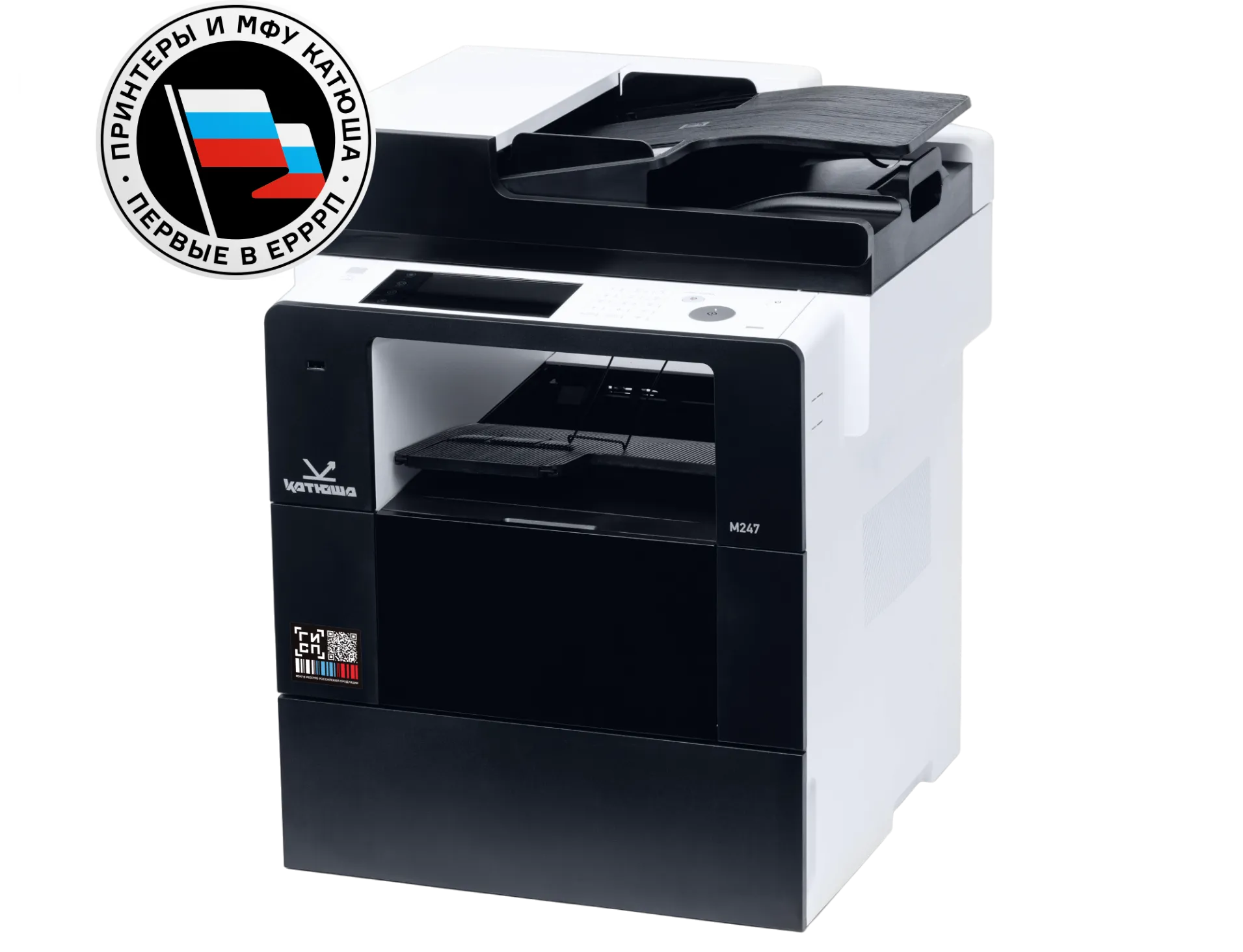 Катюша М247ep-pp – данная модель МФУ предназначена для работы малой или средней группы с небольшими потребностями в печати. Подходит для организации работ персонала в крупных государственных организациях на индивидуальных рабочих местах, или в малых или средних группах, обладает возможностями к интеграции в имеющуюся ИТ-инфраструктуру и эффективное взаимодействие с системой «Мониторинг и защита»* - отечественной системой управления парком печатной техники. МФУ А4 Катюша M247ep-pp включено в реестр МПТ.