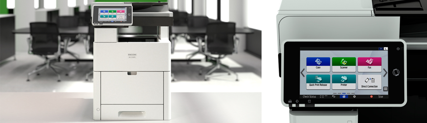 Экономия места: IM C530FB — это компактное устройство, которое занимает меньше места и оставляют больше места для печати.