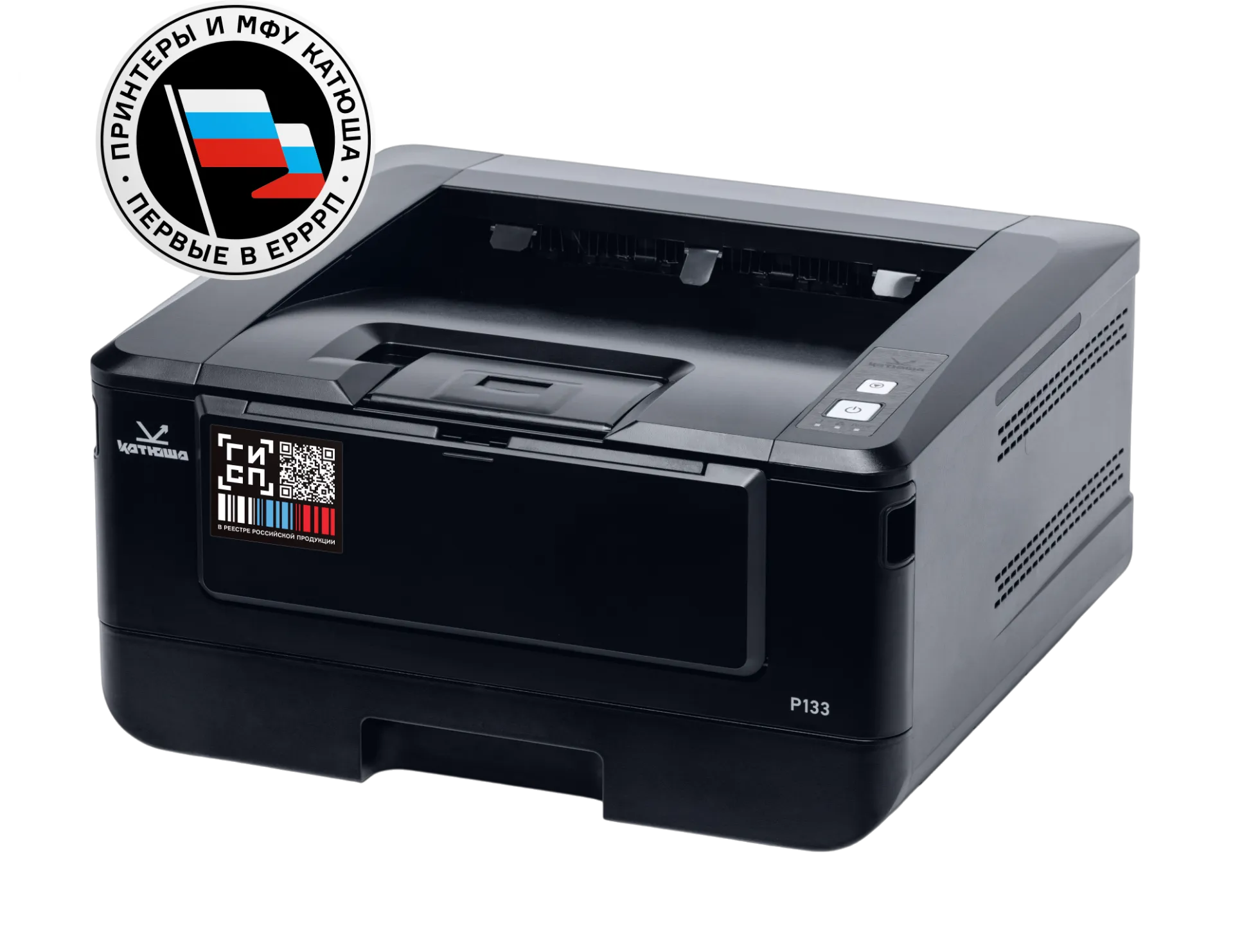 Катюша P133 -функциональный монохромный лазерный принтер. Обладает современным дизайном, компактными размерами, удобен и комфортен для печати документов формата A4. Отличается оптимальной скоростью работы и высоким качеством печати. Принтер Катюша P133-256-pp (256 МБ) входит в реестр Минпромторга.