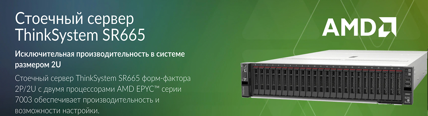 ThinkSystem SR665 — это универсальная базовая система, которую можно адаптировать ко многочисленным рабочим нагрузкам компании для удовлетворения потребностей широкого диапазона решений управления данными в гибридных средах дата-центров. Два процессора AMD EPYC™ 7003 Series в сочетании с поддержкой нескольких графических адаптеров позволяют оптимизировать производительность для экземпляров инфраструктуры виртуальных рабочих столов (VDI) и предоставляют технические ресурсы, помогающие масштабировать экземпляры VDI по мере увеличения количества сотрудников на предприятии. Продвинутые конфигурации системы хранения, от высокопроизводительных жестких дисков и до сверхбыстрых накопителей NVMe, поддерживают хранение больших объемов данных и высочайшую пропускную способность. Благодаря такому хранилищу система идеально подходит для рабочих нагрузок, связанных с базами данных, большими данными и анализом. Сервер ThinkSystem SR665, поддерживающий до 8 слотов PCIe 4.0, обеспечивает расширяемость, сетевую масштабируемость и скорость, необходимые для исключения узких мест, уменьшающих эффективность работы предприятия, при обработке рабочих нагрузок с интенсивными операциями ввода-вывода, такими как программноопределяемые сети и распределенные вычисления.