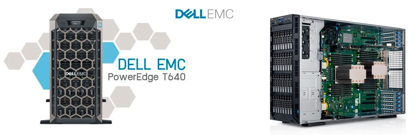 Dell EMC T640 имеет до 8 накопителей NVMe и можно использовать с двумя соединениями 10GbE. DellEMC T640 оснащен вместимостью до двух мощных процессоров Intel Xeon Scalable Bronze Silver Gold Platinum, число ядер процессоров увеличилось на 27%, а пропускная способность также увеличилась на 50%, для расширения вычислительных ресурсов, по сравнению с предыдущими сериями и поколениями процессоров. Может быть оснащен Dell EMC PowerEdge T640 до 18 х 3,5-дюймовым или 32 х 2,5-дюймовым диском, а также восемью слотами PCIe, что позволяет справляться с огромным ростом данных. Для повышения производительности изображения и VDI можно использовать до четырех 300-ваттных ускорителей GPU, дополнительные графические процессоры расширяют диапазон возможных серверных приложений.