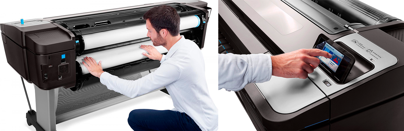 HP DesignJet T1700dr – это новый уровень профессиональной печати с высоким уровнем защиты. Быстрая обработка сложных файлов и возможности упрощенного управления позволят расширить возможности вашего бизнеса. Функции HP DesignJet T1700dr могут модернизироваться вместе с изменяющимися условиями для того, чтобы всегда быть на шаг впереди конкурентов. HP DesignJet T1700dr позволяет устанавливать и печатать сразу на 2 рулонах. Выбор рулона, на котором производится текущая печать, производится на экране плоттера, в драйвере или программе печати. Так же можно настроить автоматический выбор активного рулона. Так можно либо уменьшить технические простои, либо обеспечить выбор нужного типа носителя во время печати.