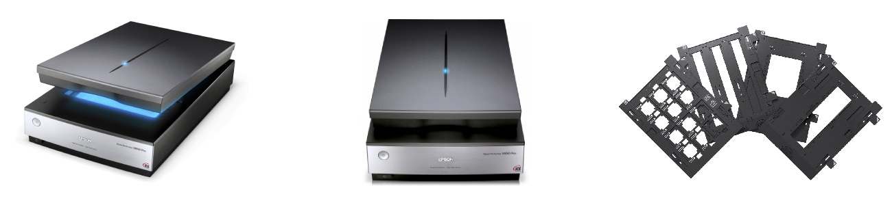 Улучшенная конструкция держателей для пленки дает пользователям возможность более точно настраивать высоту держателя, регулируя таким образом положение точки фокусировки и добиваясь большей четкости. Новые держатели также снабжены специальными пластинами, которые прижимают пленку к стеклу и помогают избежать появления колец Ньютона при сканировании. Модель Epson Perfection V850 Pro имеет два набора держателей в комплекте, что позволяет сканировать два оригинала одновременно.