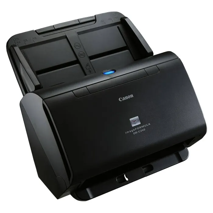 Сканер Canon imageFORMULA DR-C240 – компактный прибор с настольным размещением. С его помощью выполняется оцифровка различных документов. Максимальный формат бумаг для сканирования – А4. В устройство установлен датчик CIS. Скорость сканирования для монохромных изображений – 45 страниц в минуту, для цветных – 30 страниц в минуту. В оборудование установлено устройство автоматической подачи. Оно двухстороннее, а в лоток загружается 60 листов. Подобное оснащение облегчает оцифровку больших объемов документов.