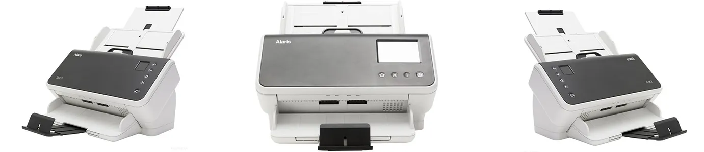 Аппарат компактный: без выдвинутых удлинителей лотков он занимает на столе место размером 26 см в глубину (в проекции) и 31 см в ширину. Внешний блок питания очень небольшой, вилка располагается на его корпусе, длина выходного кабеля 1,75 м.Фронтальная панель сканера имеет наклон около 45 градусов, в ее правой части имеются ЖК-экран и четыре управляющие кнопки.Спереди внизу находится приемный лоток. Он состоит из трех ступеней, две из которых выдвигаются в соответствии с размерами обрабатываемых документов. Четвертым его элементом является откидной ограничитель, который не даст листам выходить далеко вперед.