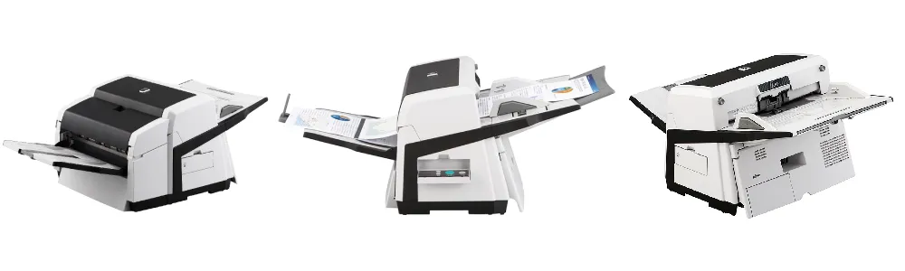 Управление смешанными партиями. При работе со смешанными партиями документов, которые различаются по качеству, размеру и плотности, интуитивно понятные возможности подачи и прямые механизмы подачи таких сканеров серии поддерживаются автоподатчиком на 200 листов. Так как документы попадают в сканер с нижней части стопки бумаги, пользователь имеет возможность постоянно подавать бумагу в процессе сканирования. Существует также возможность сканирования специализированных документов, таких как медицинские электрокардиограммы или распечатки лабораторных приборов длиной до 3 метров. Переплетенные отчеты, книги и хрупкие документы сканируются с применением встроенной планшетной поверхности.